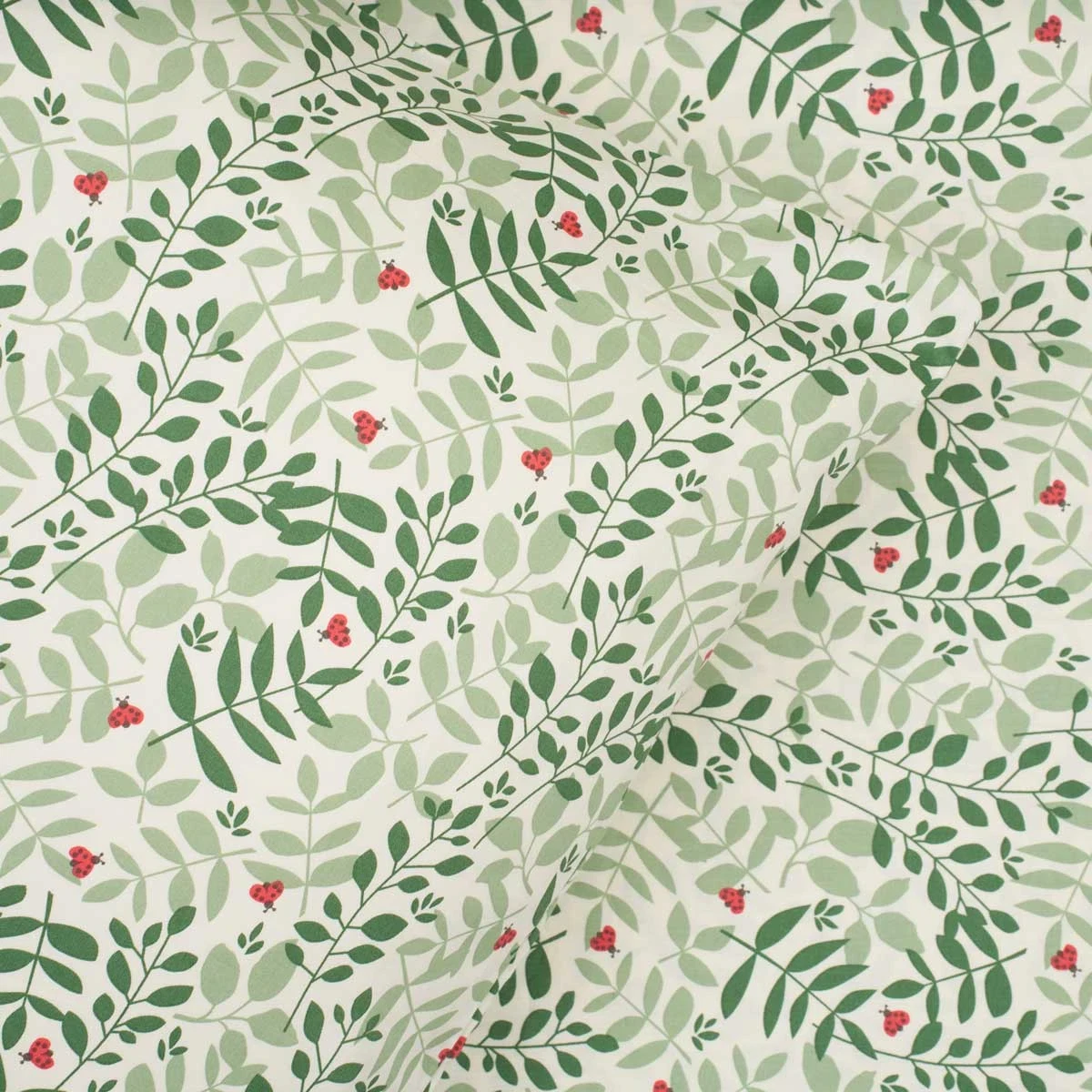 Baby sengetøj 70x100 - bomuldssatin - Mariehøne - Luna Denmarkmariehøne sengetøj til baby på redt sengDetalje af pudebetræk med mariehøneSoveværelse med redt seng i sengetøj med mariehøne