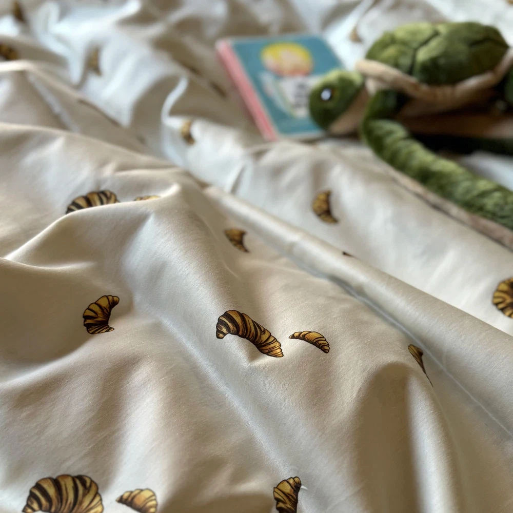 Junior sengesæt - 100x140 cm - bomuldssatin - Croissant - Luna DenmarkBløde luksus håndklæder i bomuld og bambusZero Twist vævning - Særlig bløde og slidstærkeSengesættet fra Luna Denmark har et smukt croissant print.Sengesættet er fremstillet i 100% bomuld.Sengesættet lukkes nemt med lynlås