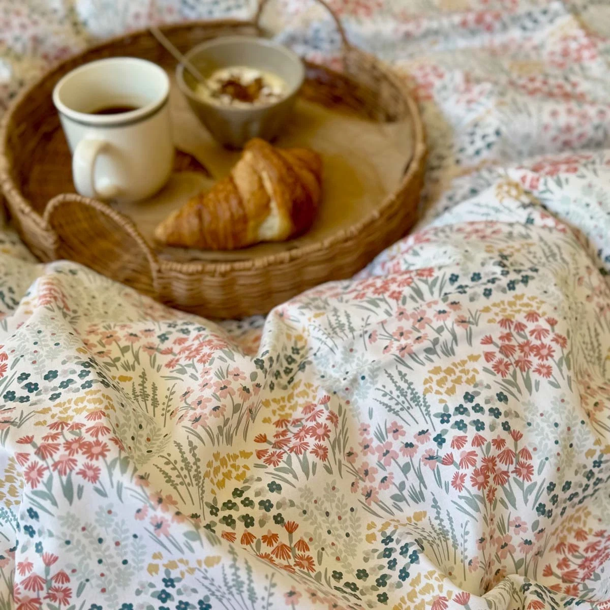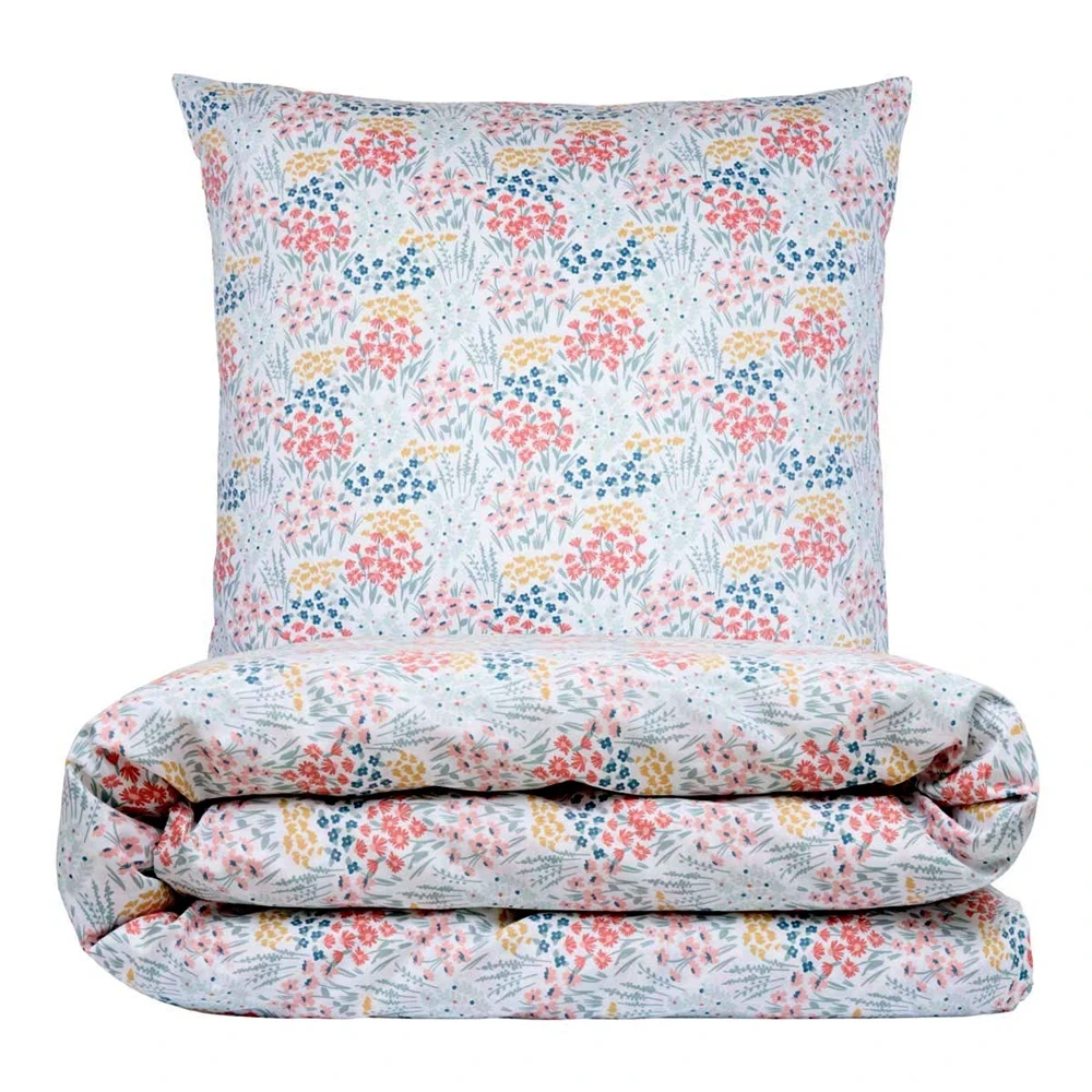 Sengesættet Kornblomst fra Luna Denmark har et smukt print af små flerfarvet blomster. Sengesættet er fremstillet i 100% bomuld, som er satinvævet med tread count 220 med soft finish, dermed opnås en slidstærk, glat og ekstra blød overflade, som smyger sig behageligt omkring dig. Dertil er bomuld kendt for sin naturlige åndbarhed, hvilket betyder, at det tillader luft at cirkulere, og det hjælper med at regulere kropstemperaturen om natten. Sengesættet lukkes praktisk og nemt med lynlås i både pude- og dynebetræk. Smukt sengesæt til dig, der ønsker et romantisk udtryk i soveværelset.