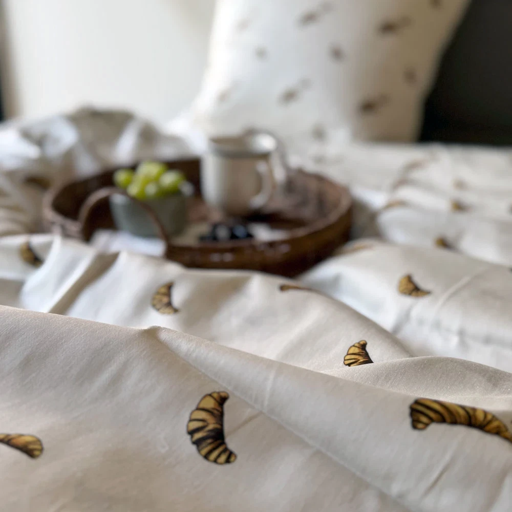 Sengesæt 140x200 cm - Bomuldssatin - Croissant - Luna DenmarkBløde luksus håndklæder i bomuld og bambusSmukt sengesæt til dig, der ønsker et smukt udtryk i soveværelset.Sengesættet fra Luna Denmark har et smukt croissant print.