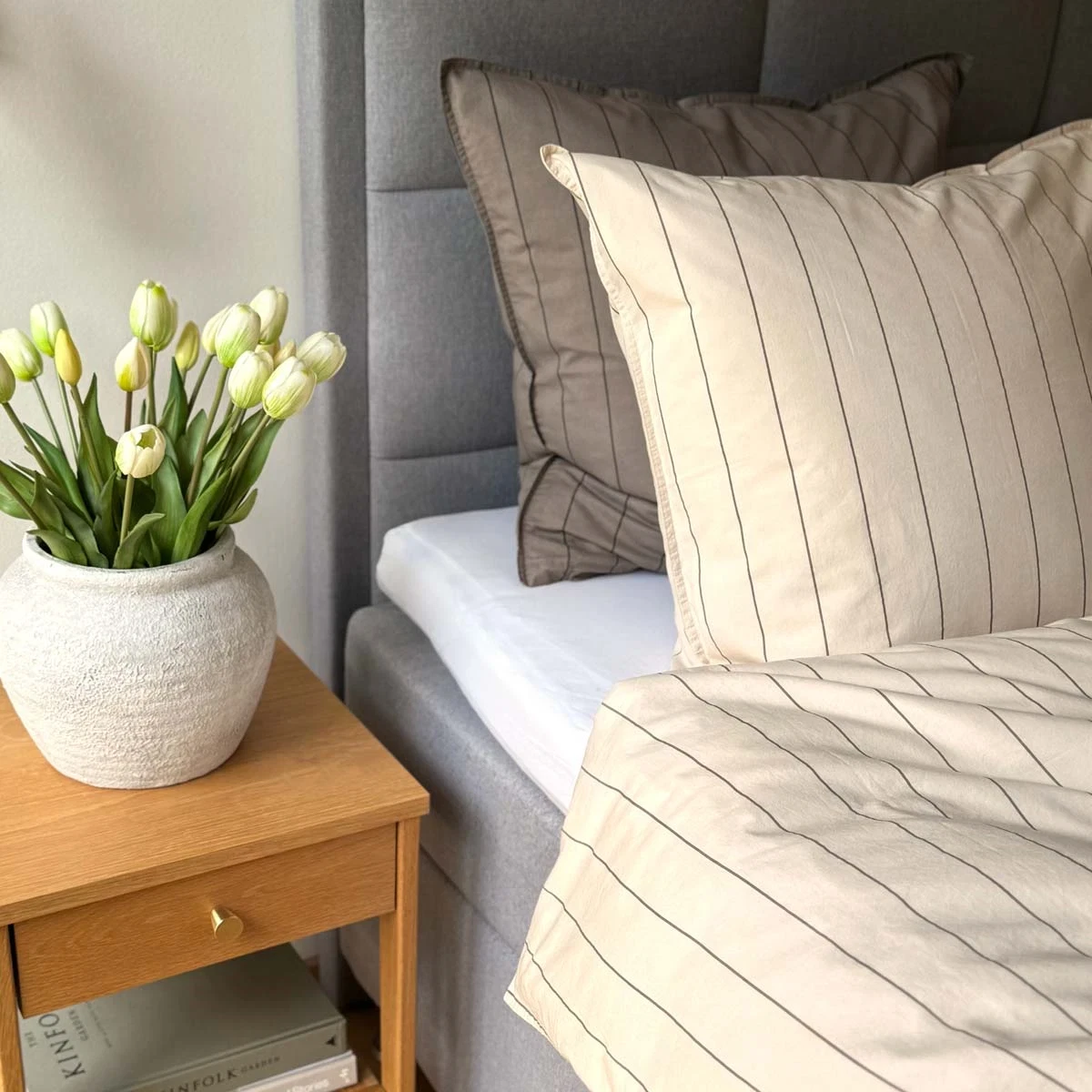Vores sengetøj er designet med en praktisk lynlås lukning, der gør det hurtigt og nemt at skifte sengetøj. Lynlåsen er diskret, holdbar og sikrer at dynen og puden bliver på plads hele natten. En perfekt løsning for dig, der ønsker både komfort og funktionalitet i hverdagen.