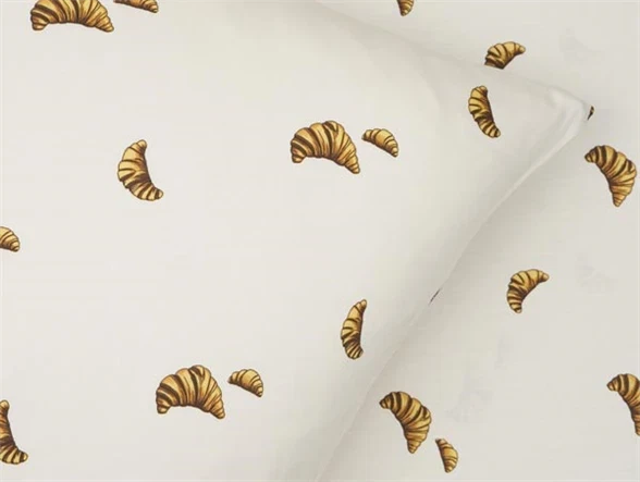 Sengesæt 200x220 cm - bomuldssatin - Croissant - Luna DenmarkSeng redt med croissant sengetøj med bakkedetalje croissant sengetøj lynlåsdetalje croissant sengetøj pudebetræk