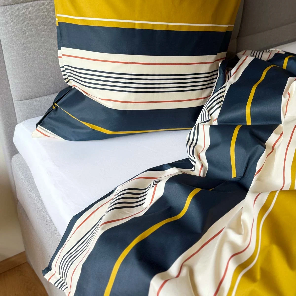 Sengetøj 140x200 cm - Bomuldssatin - Ditlev - Orange - Luna DenmarkSmukt stribet sengetøj fra Luna DenmarkDitlev sengetøj i 100% bomuldssatinSengesættet fra Luna Denmark har et smukt stribet printSengesættet lukkes nemt med lynlås