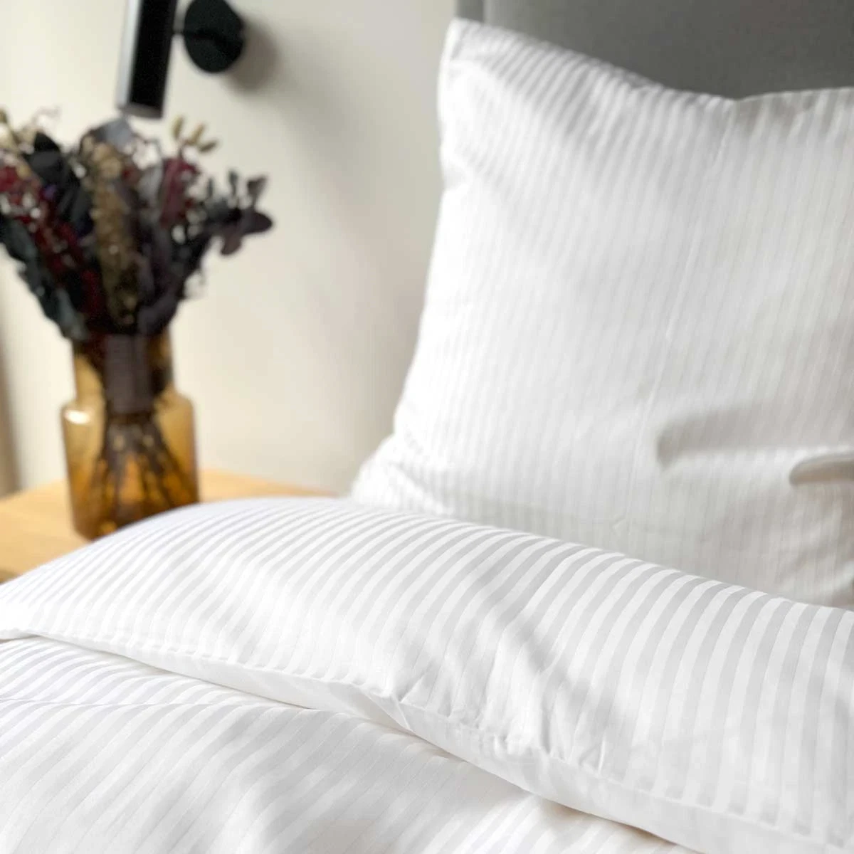 Sengetøj 140x200 cm - bomuldssatin - Smal stribet - hvid - Luna Denmark