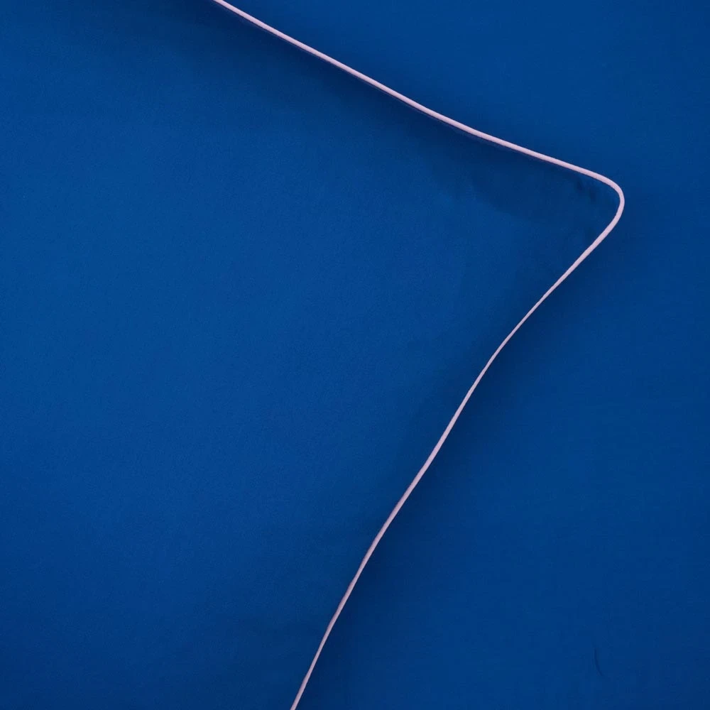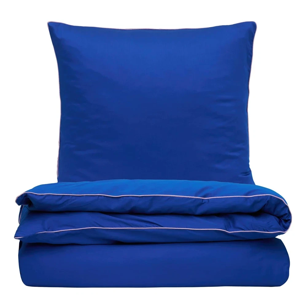 Sengetøj 140x220 cm - bomuldssatin - Una - blå med lilla piping - Luna Denmark