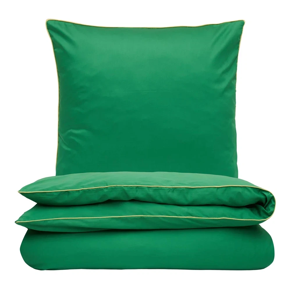 Sengetøj 140x220 cm - bomuldssatin - Una - grøn med gul piping - Luna Denmark