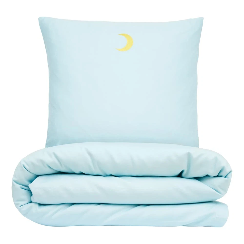 Sengetøj 140x220 cm - Bomuldssatin - Lys blå m. broderi - Luna DenmarkSengesættet lukkes nemt med lynlåsSengesættet er fremstillet i 100% bomuld.