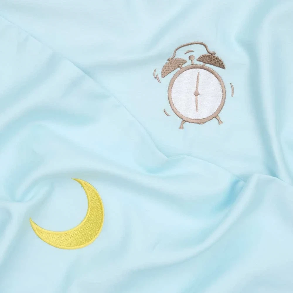 Sengetøj 140x220 cm - bomuldssatin - lys blå m. broderi - Luna Denmark