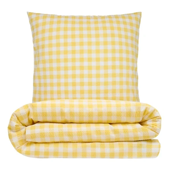 Sengetøj 140x220 cm - bæk og bølge - Check - gul - Luna DenmarkOplev den unikke komfort med vores luksuriøse bæk og bølge sengetøj fra Luna DenmarkCheck - bæk og bølge fra Luna DenmarkSengesættet er fremstillet i 100% bomuld.Sengesættet lukkes nemt med lynlås i dynebetrækket