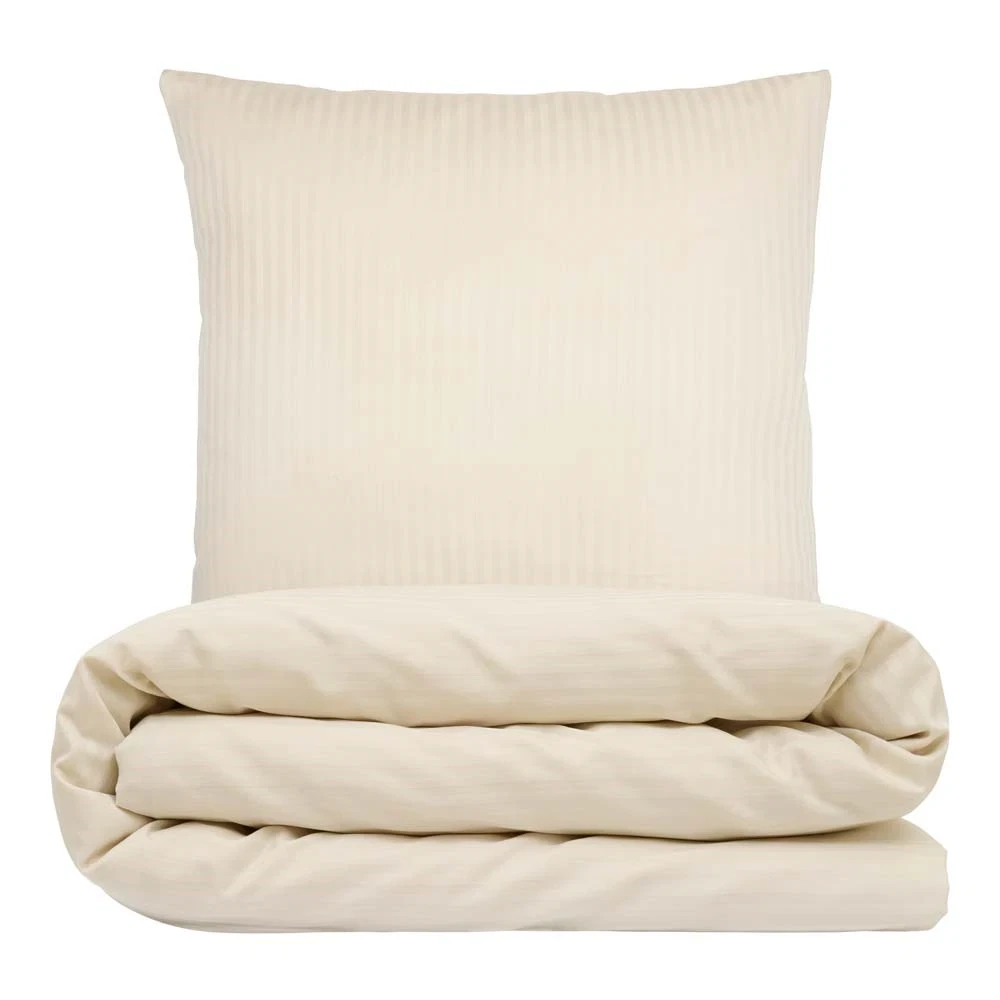 Sengetøj 140x220 cm - bomuldssatin - Smal stribet - champagne - Prima