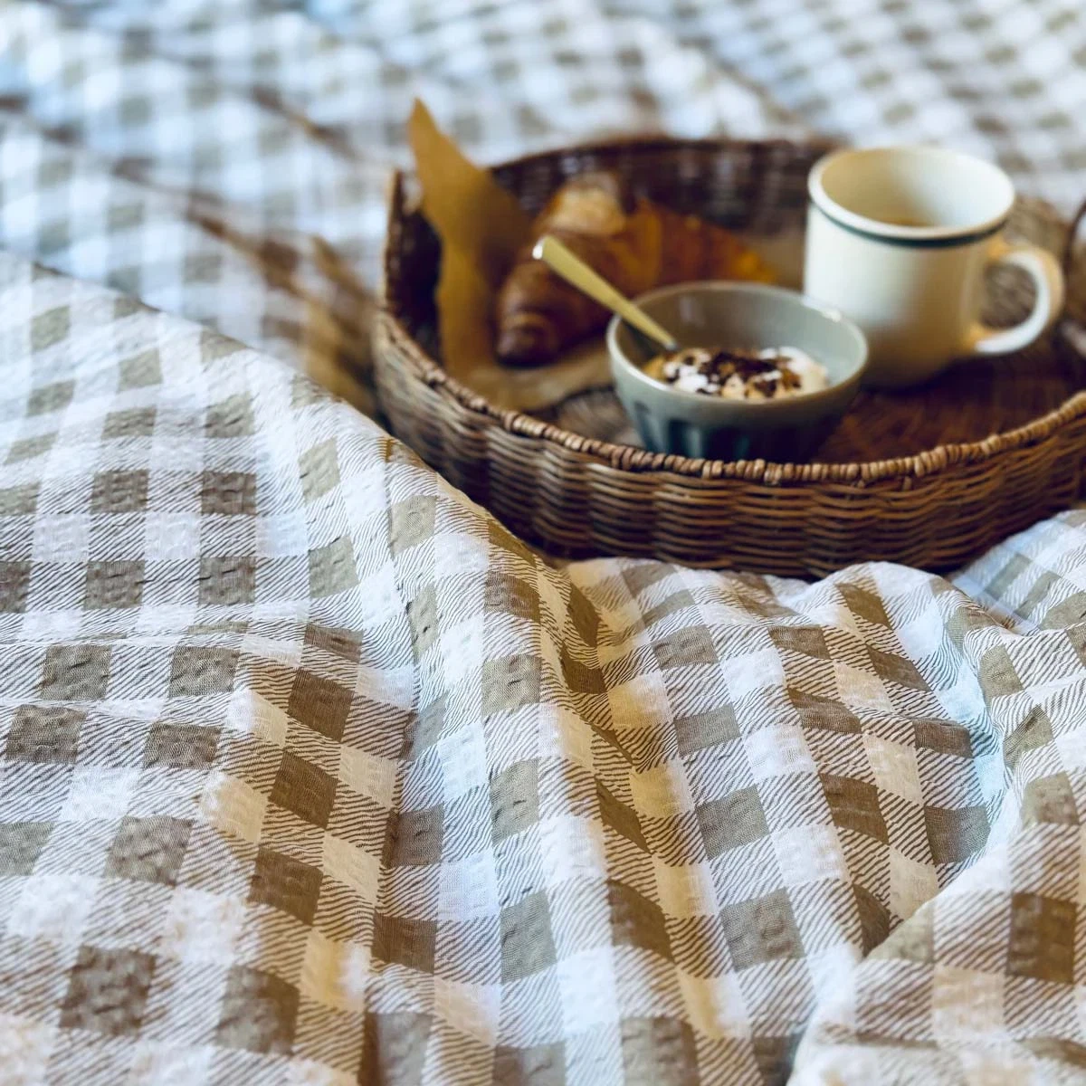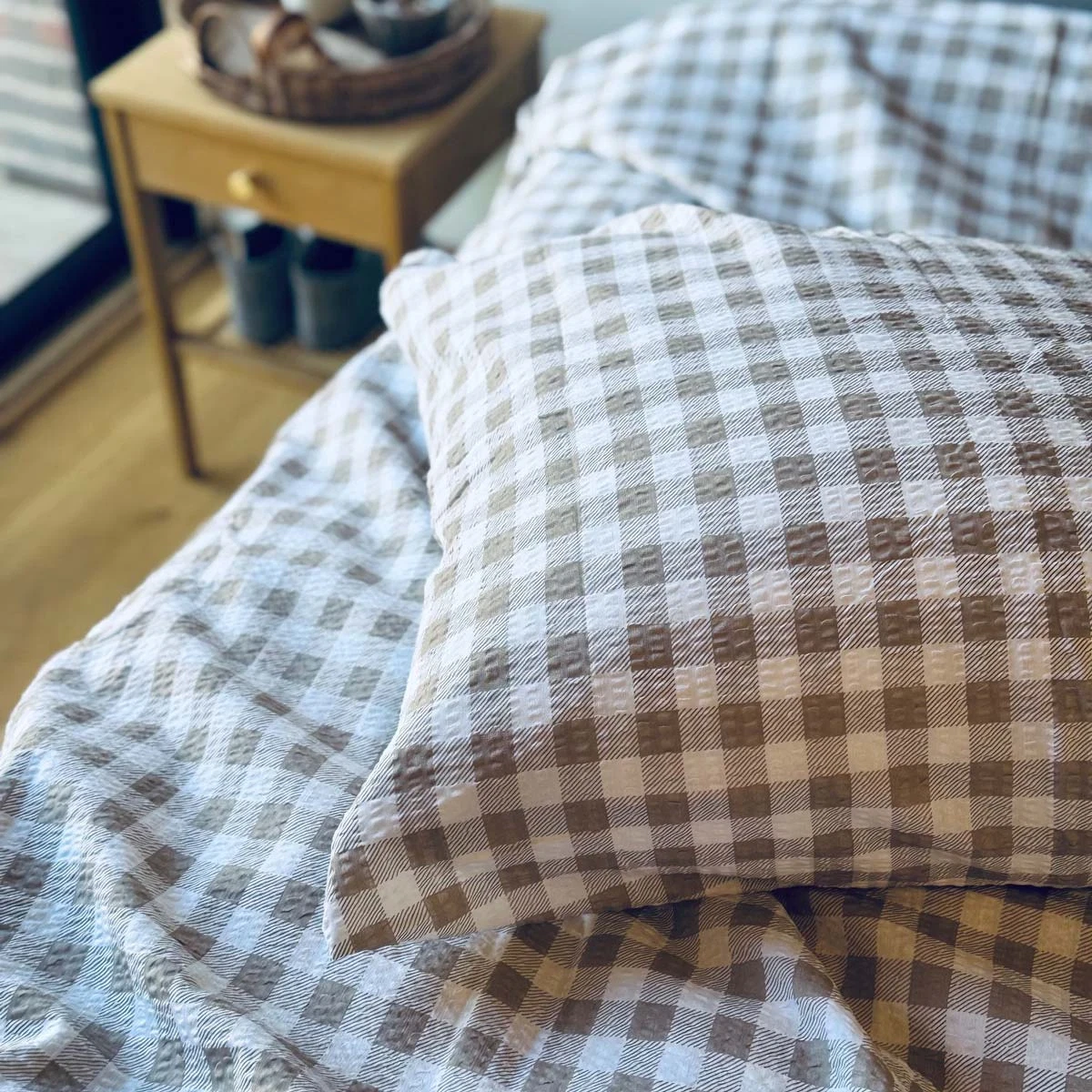 Sengetøj 200x200 cm - bæk og bølge - Check - mokka - Luna Denmark
